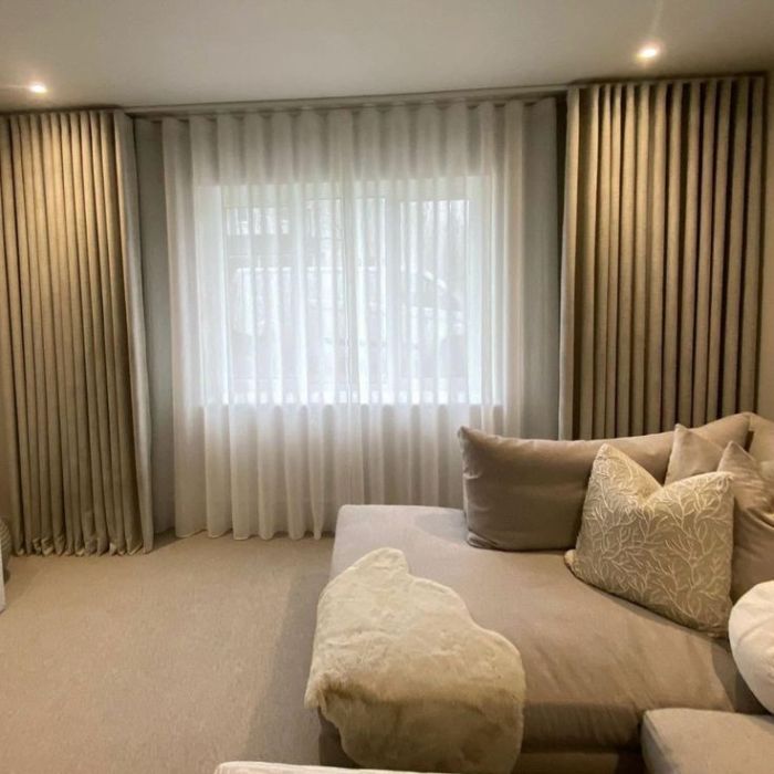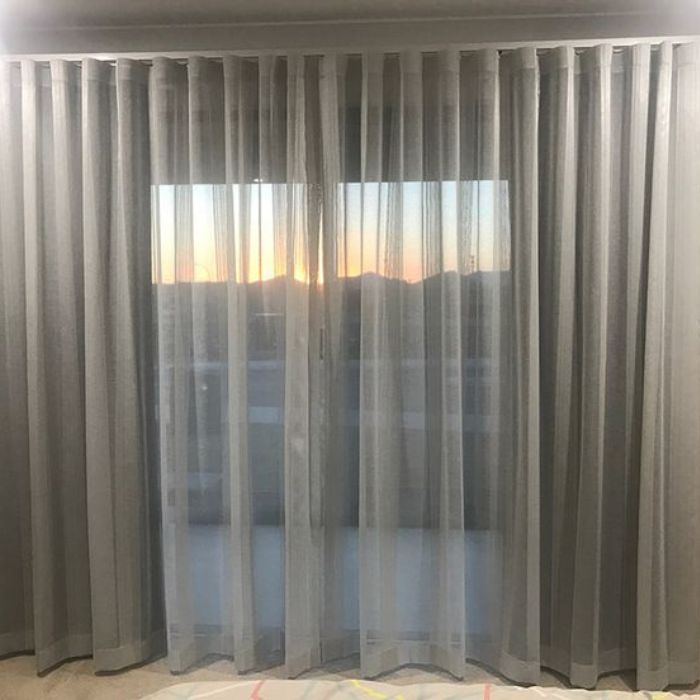 Dual-layer curtains offering both natural light and full privacy when needed.